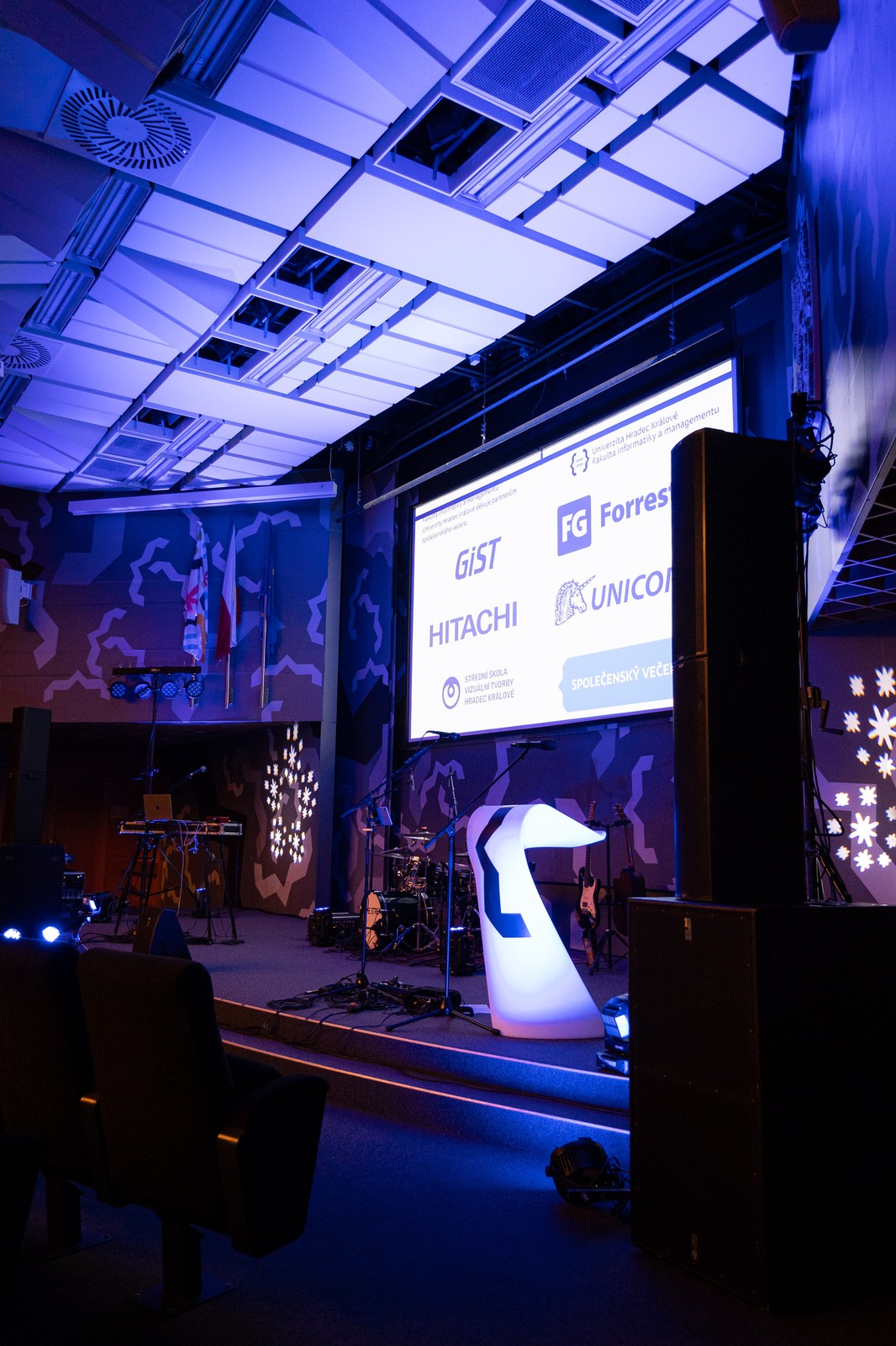 První prosincový čtvrtek se aulou rozezněly tóny známých melodií a písní v podání kapely The Stream, která provázela Společenským večerem Fakulty informatiky a managementu UHK.