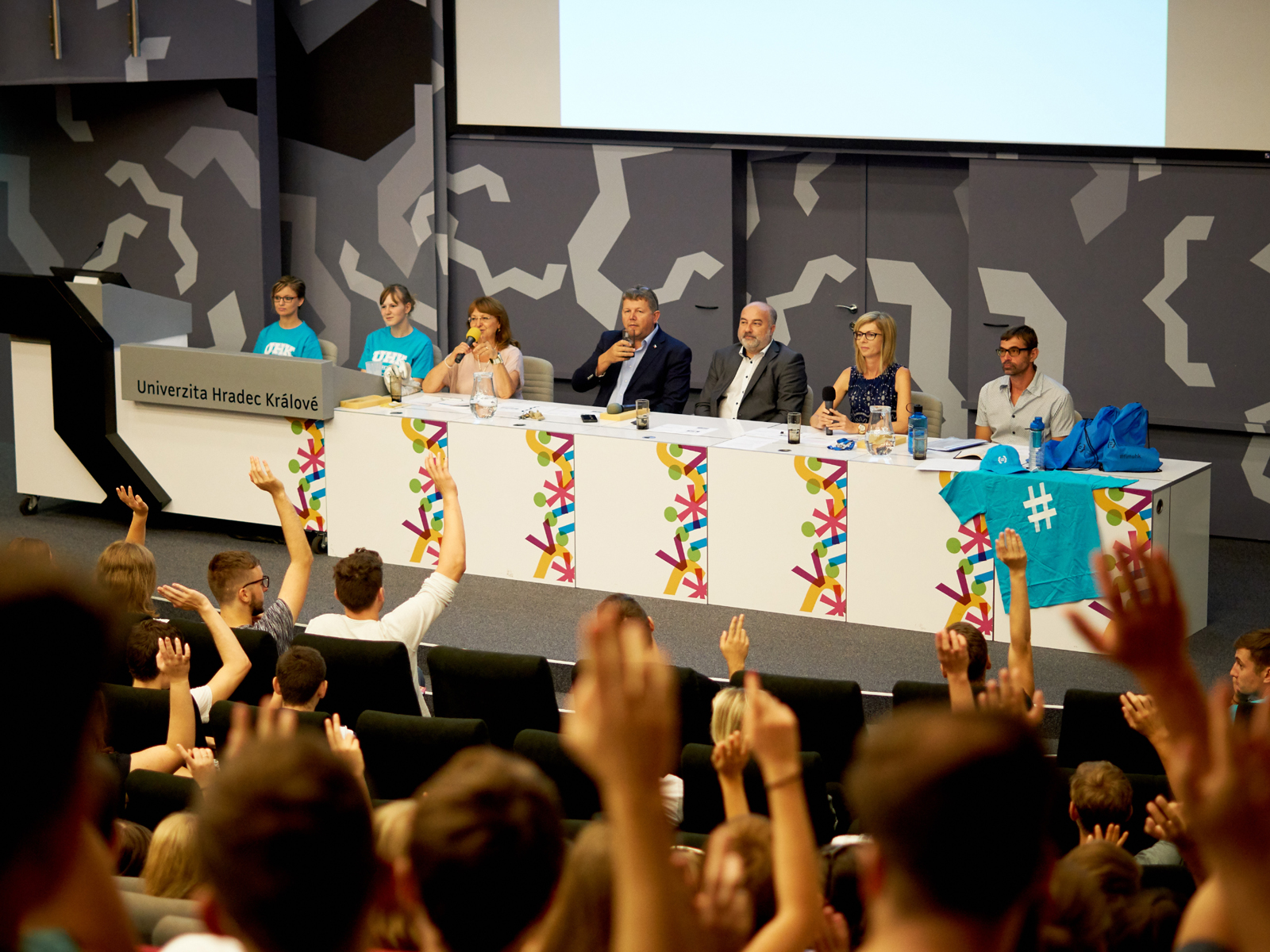 Prázdninovou aulu univerzity zaplnilo více než 300 studentů napříč obory. I letošní, již 22. ročník tohoto setkání zorganizoval tým První kroky na FIM (PKNF). Studentská skupina pod vedením doktorky Věry Strnadové založila a spravuje také stejnojmenný portál, který se stal platným pomocníkem pro všechny nováčky na vysoké škole.