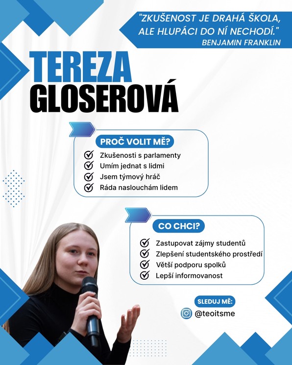 Do akademického senátu kandiduji, protože chci být hlasem studentů. Mým cílem je otevřenější komunikace mezi studenty a vedením, větší podpora studentských projektů a prostředí, kde se studenti nebojí vyjádřit své názory.