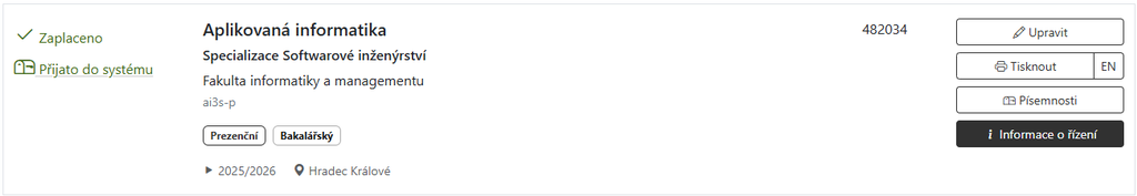 - Pravidla pro přijímací řízení a podmínky pro přijetí ke studiu na Fakultě informatiky a managementu Univerzity Hradec Králové na akademický rok 2026/2027