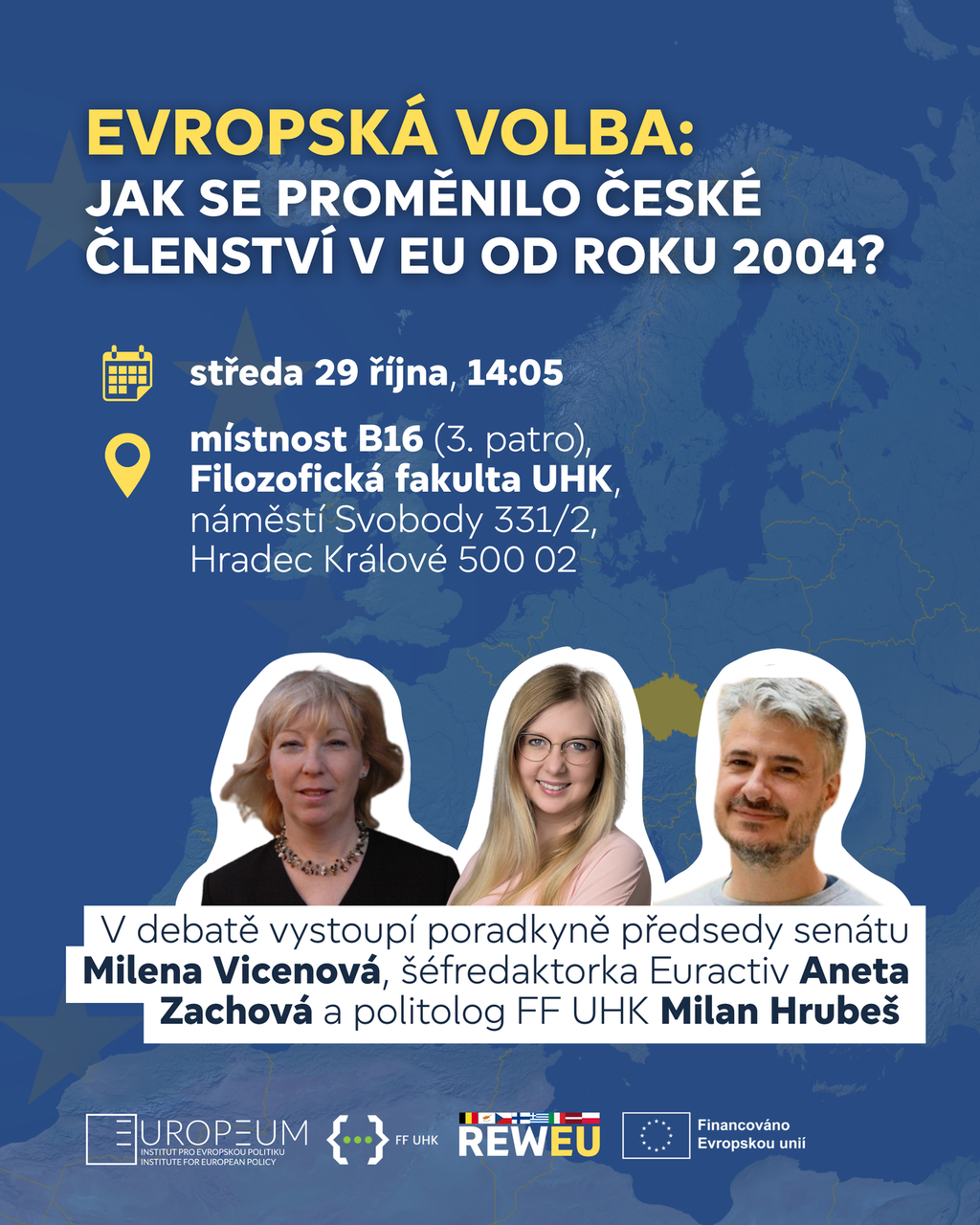 V debatě se vrátíme k zásadnímu milníku roku 2004 a podíváme se na to, jak vstup do EU proměnil českou politiku, ekonomiku i naši roli v Evropě. Otevřeme otázky přenesených pravomocí, hodnotového ukotvení a toho, co dnes vlastně znamená být „v Unii“. Přijďte si poslechnout i zapojit se do diskuse o české cestě evropským labyrintem.