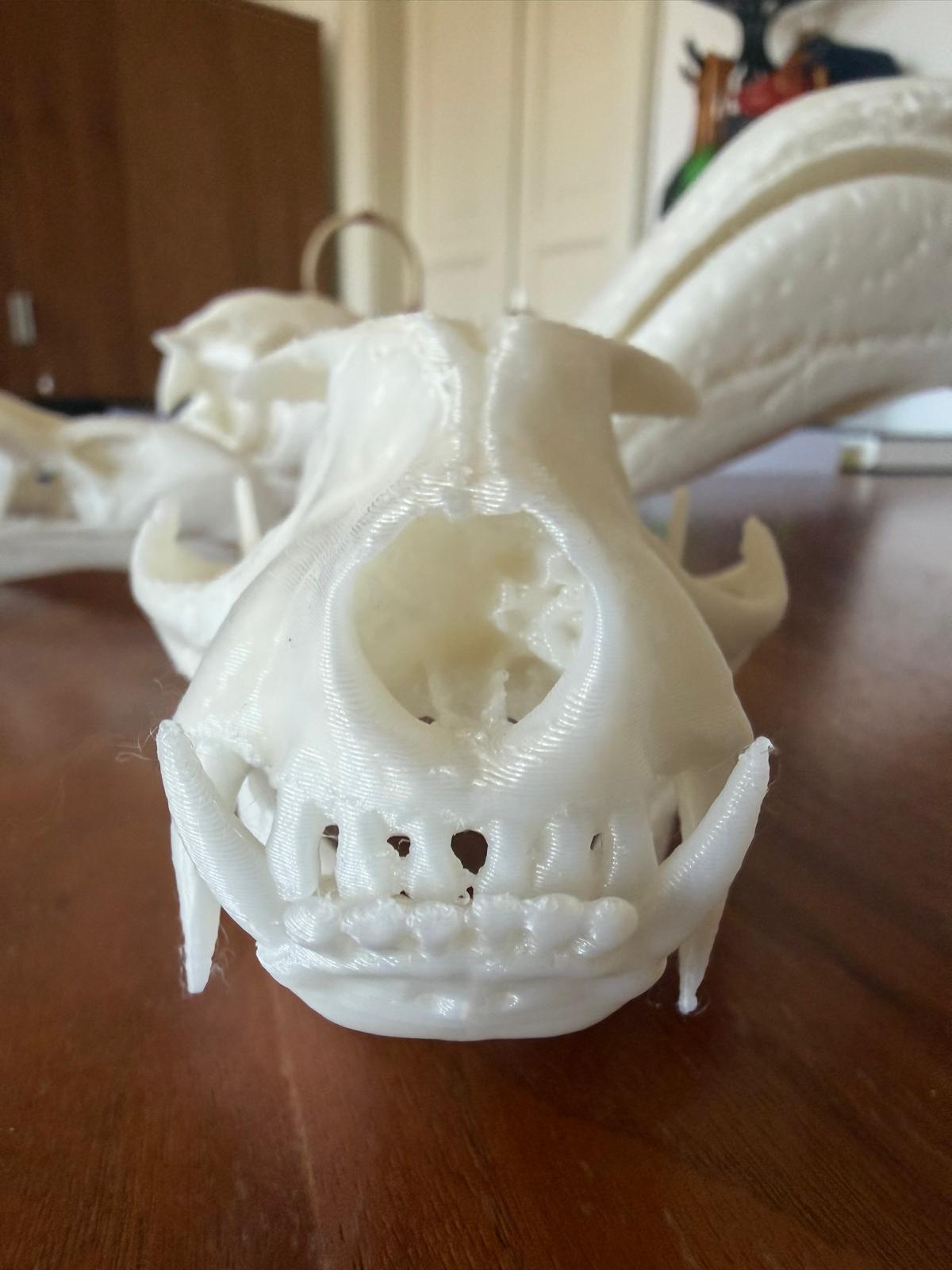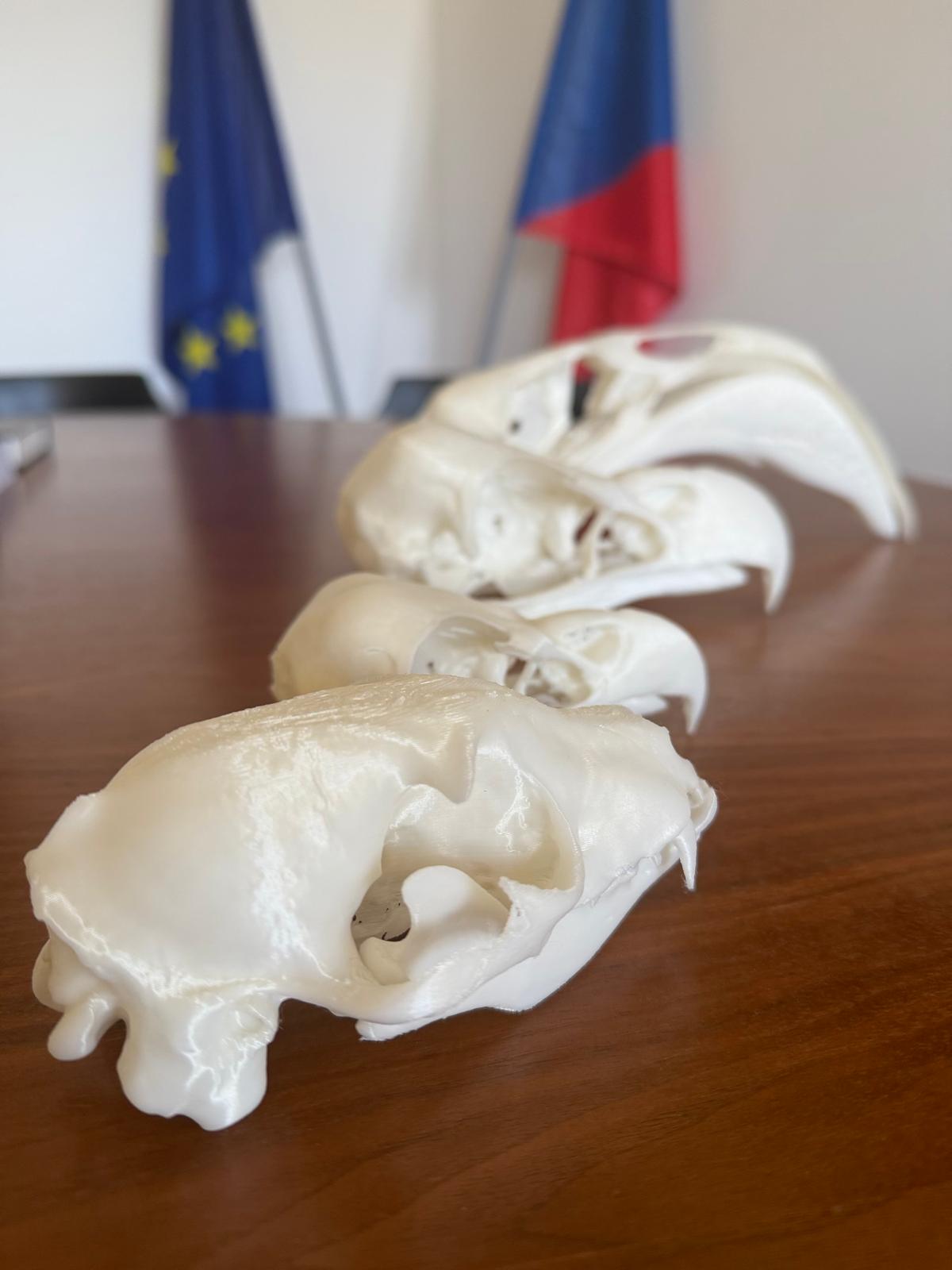 Následně proběhlo zpracování dat ve specializovaném softwaru, kde byly odstraněny drobné nedokonalosti vzniklé při snímání a modely byly optimalizovány pro další využití. Výsledkem této fáze byly detailní 3D modely odpovídající originálním kostrám. Vytvořené modely byly dále využity pro 3D tisk, který proběhl ve spolupráci s Fakultou informatiky a managementu UHK, konkrétně s Institucí moderních informačních technologií. Díky této spolupráci bylo možné převést digitální data do hmatatelné podoby a vytvořit přesné repliky kosterních struktur.
