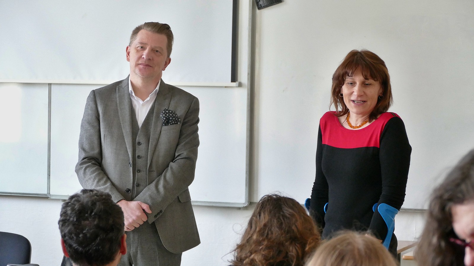 Besedy, která se konala ve středu 26. února, se kromě studentů učitelství zúčastnili i studenti jiných oborů, učitelé dějepisu z praxe a další zájemci (např. posluchači z U3V). Přes šedesát účastníků besedu zaujatě sledovalo a mnozí se zapojili do diskuze se svými dotazy i názory.