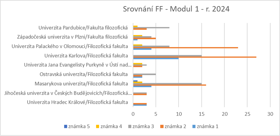 Celkově bylo z filozofických fakult napříč Českou republikou v rámci Modulu 1 hodnoceno 179 výstupů, finální známku 1 obdrželo 24 z nich, finální známku 2 pak 84 výstupů. Například vědecko-výzkumná činnost Filozofické fakulty Masarykovy Univerzity byla oceněna čtyřmi „jedničkami“, olomoucká filozofická fakulta taktéž.
