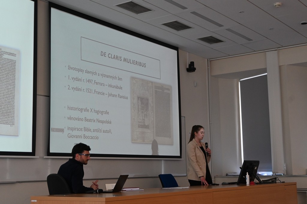 Ve dnech 25. a 26. dubna se na Univerzitě Pardubice uskutečnila Celostátní studentská vědecká konference Historie 2024. Naši katedru zde zastupovala Bc. Kateřina Kamenská s příspěvkem Kodikologický rozbor a obsahová analýza vybraných biografií ze spisu De claris mulieribus, sepsaného Jacobem Philippem Bergomensis.