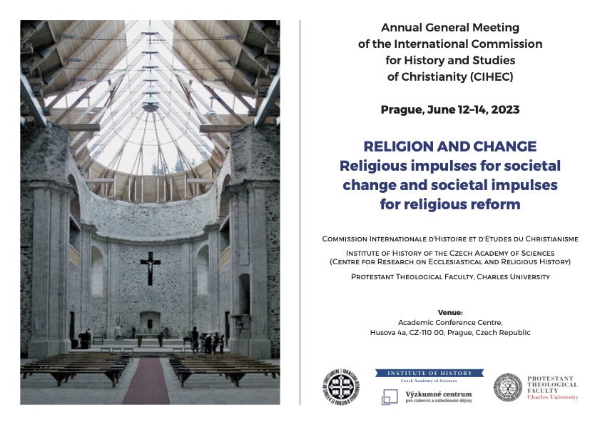 Vážené studentky, vážení studenti, dovolujeme si vás informovat, že Výzkumné centrum pro církevní a náboženské dějiny pořádá společně s Evangelickou teologickou fakultou Univerzity Karlovy výroční kongres mezinárodní společnosti pro výzkum dějin křesťanství (CIHEC), který se uskuteční ve dnech 12.-14. 6. 2023 v prostorách Akademického konferenčního centra (Husova 4a, Praha 1).