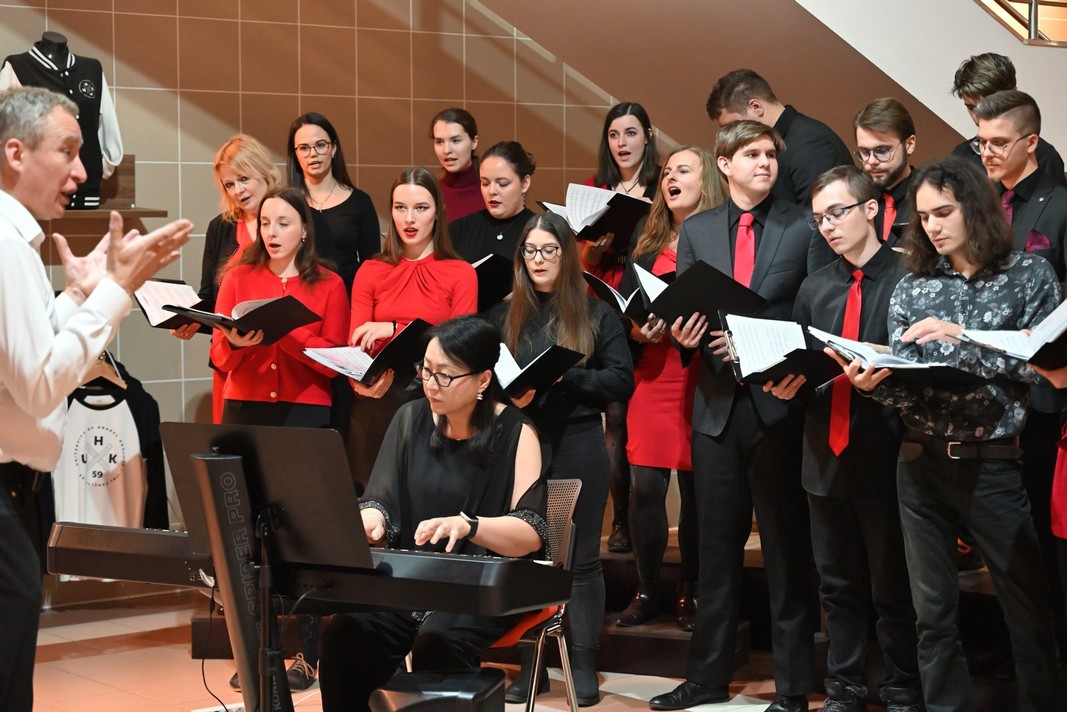 Královéhradeckému publiku se oba sbory představily v úterý 3. března ve Dvoraně Kampusu Budovy A, kde slavnostně promluvil prorektor Univerzity Hradec Králové prof. PhDr. MgA. František Vaníček, Ph.D. a hosty přivítala také paní děkanka Pedagogické fakulty PhDr. Nella Mlsová, Ph.D.