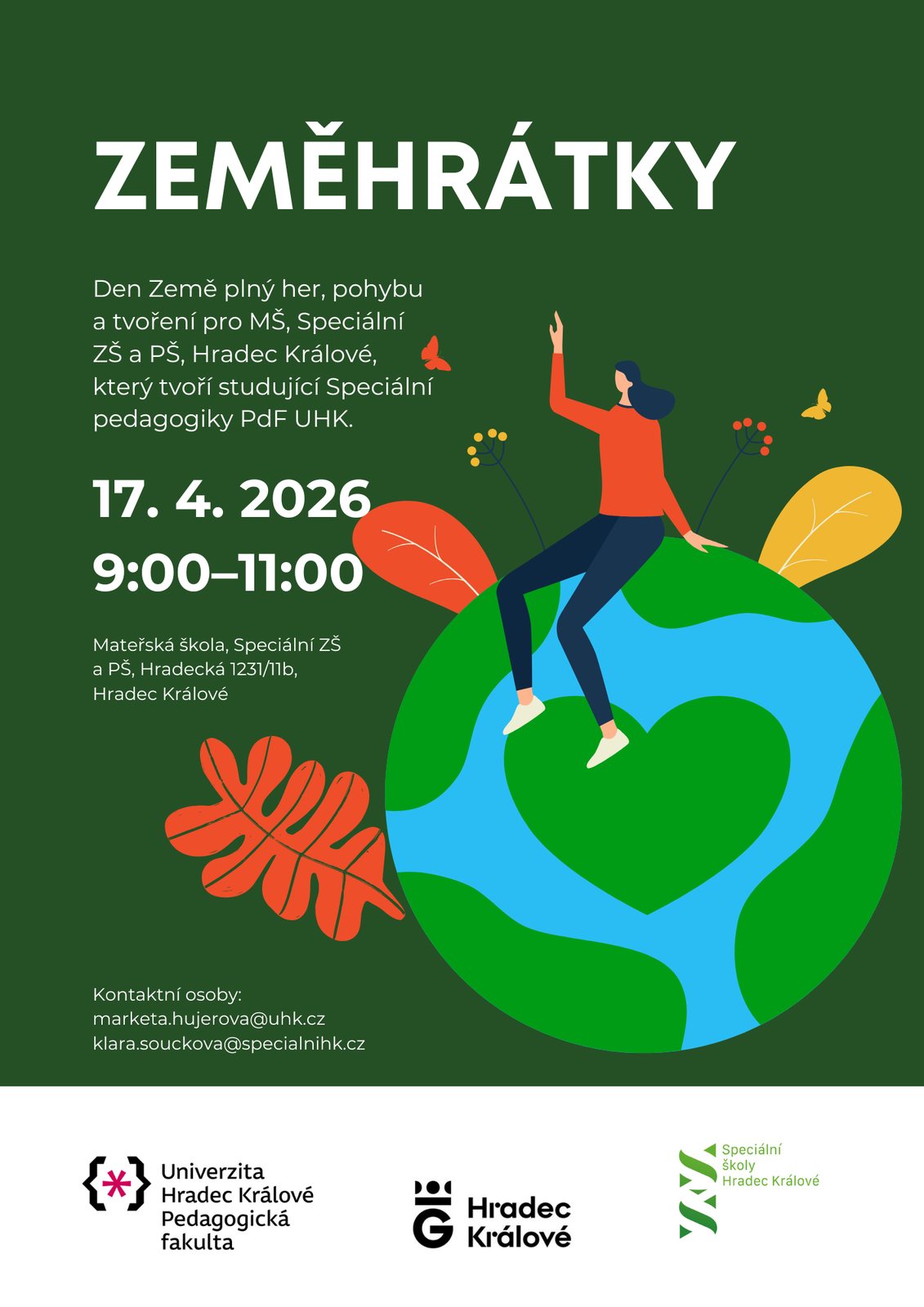 Dovolujeme si Vás pozvat na akci ZEMĚHRÁTKY, která se uskuteční v pátek 17. dubna 2026. Program připravují studenti 2. ročníku oboru speciální pedagogika PdF UHK.