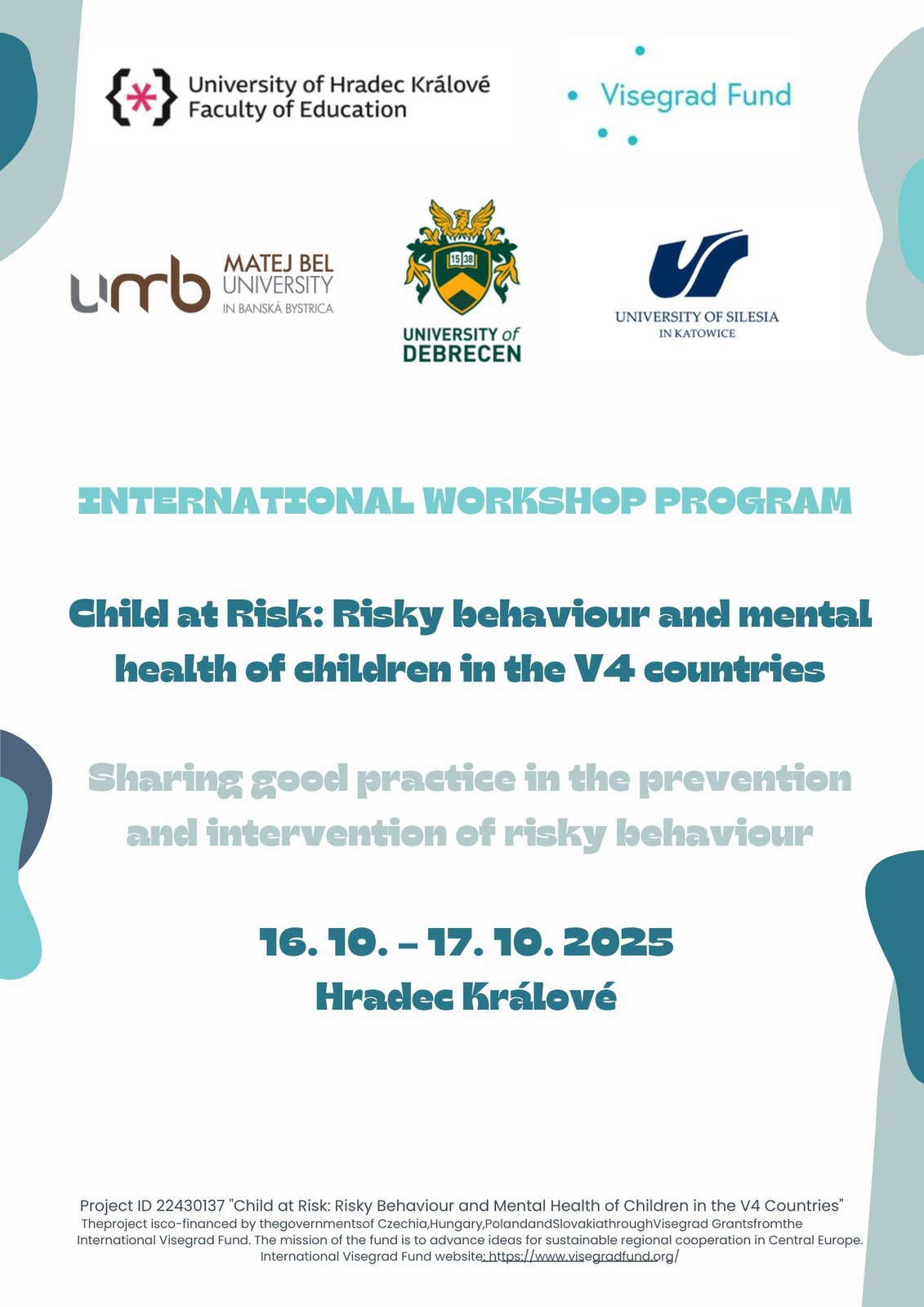 On 16–17 October 2025, a professional workshop was held at the Faculty of Education of the University of Hradec Králové as part of the International Visegrad Fund project Child at Risk: Risky Behaviour and Mental Health of Children in V4 Countries (Project ID 22430137). The event, organised by the Institute of Social Studies, provided a number of inspiring ideas for linking the academic environment with practice.