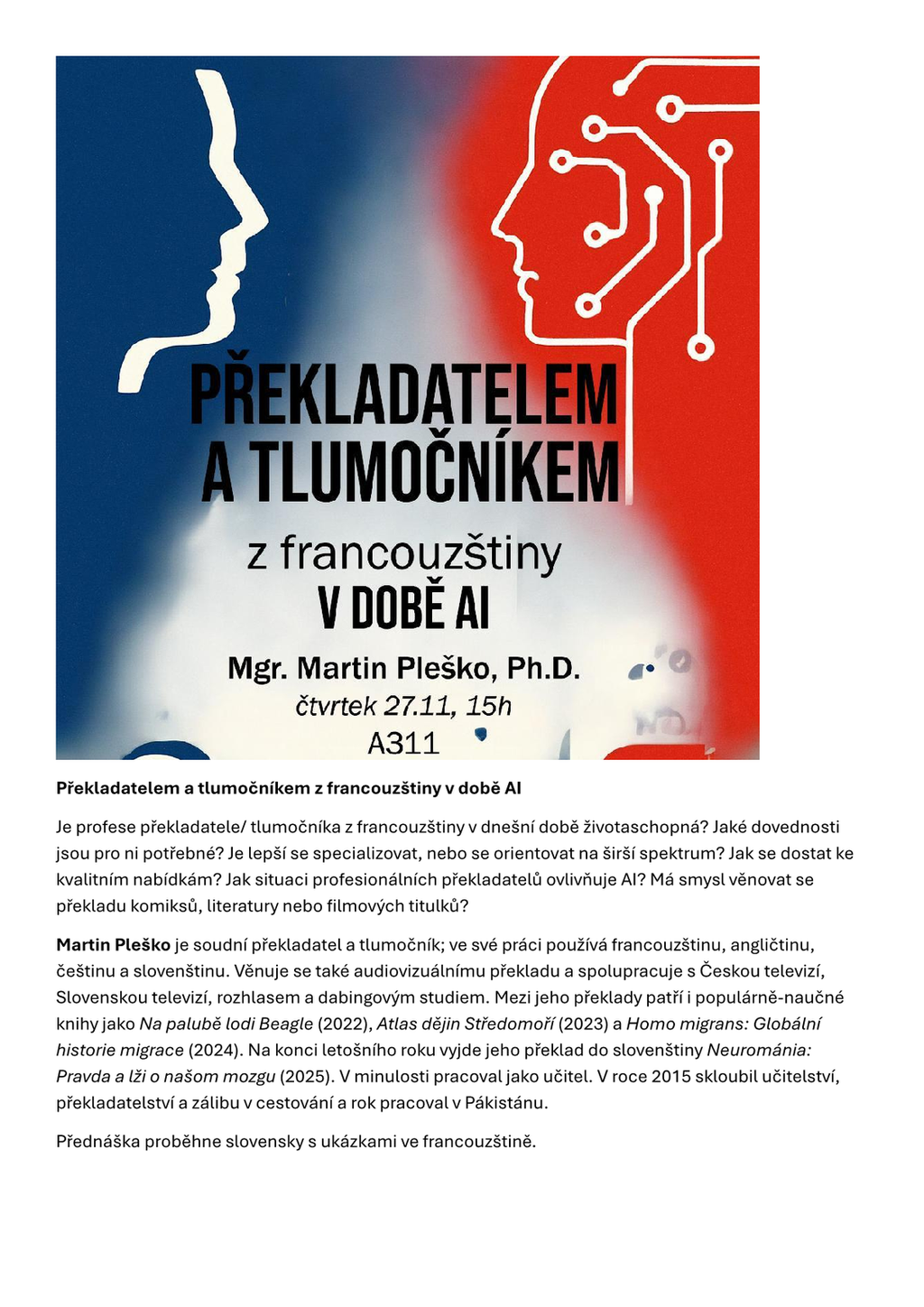 Nabídka sekce: Katedra francouzského jazyka a literatury