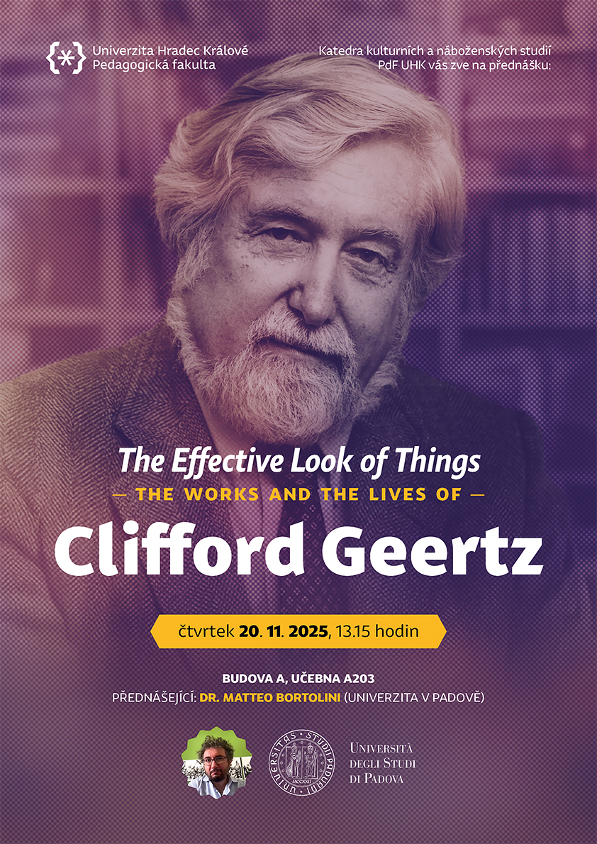 Přednášku pod názvem The Effective Look of Things. The Works and the Lives of Clifford Geertz přednese dr. Matteo Bortolini, který v současnosti pracuje na Geertzově životopisu.