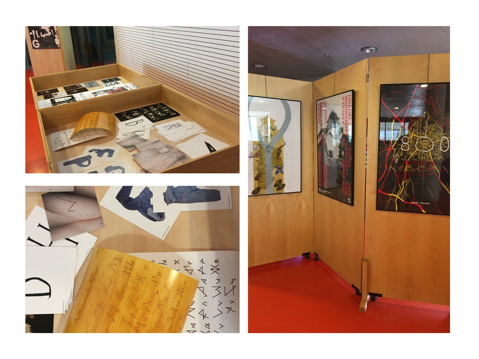 Návštěvníci si budou moci prohlédnout autorské knihy a experimentální fonty, které vznikly během zimního semestru pod vedením MgA. Petra Hůzy. Díky tomu lépe pochopí, jak se propojují prostor, písmo a plakát do jednotného vizuálního jazyka.