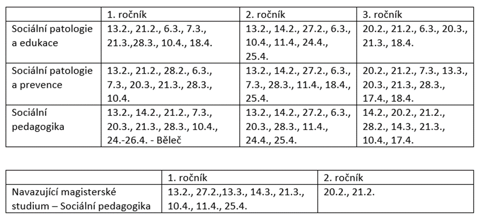 Vzhledem k probíhajícímu rozvrhování se jedná o předpokládané termíny. Změna je vyhrazena.