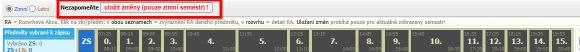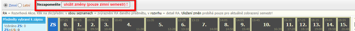Registraci potvrdíte tlačítkem "uložit změny". Tlačítko se nachází nad tabulkou s rozvrhem:
