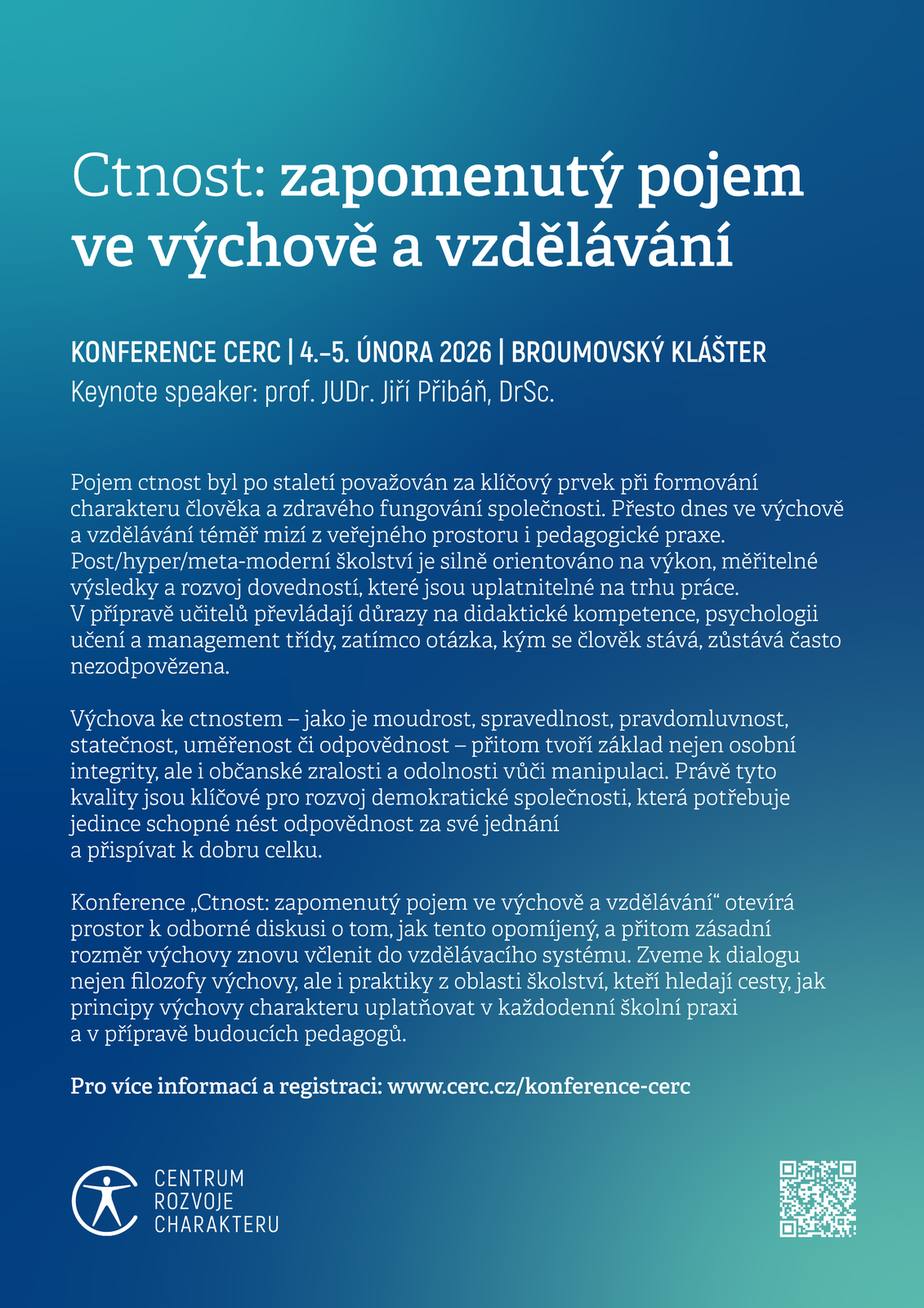 Konference CERC 2026: "Ctnost: zapomenutý pojem ve výchově a vzdělávání"