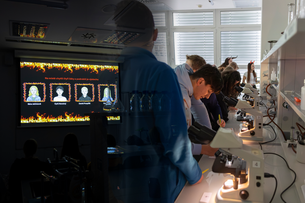 Na katedře biologie se žáci proměnili v detektivy. Kromě zkoumání bezobratlých se spolkem Insekta či minerálů pod UV světlem museli vyřešit případ zmizelé Knihy hříchů. Indicie k odhalení pachatele se ukrývaly přímo pod objektivy mikroskopů. Tato hra měla jasný cíl, a to nenásilnou formou naučit žáky mikroskopovat. Aby usvědčili zloděje, museli vzorky správně zaostřit, analyzovat a spojit si mikroskopické stopy s trasami podezřelých.