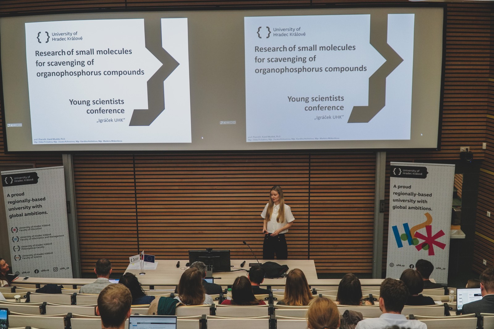 Na chemii vznikají projekty, které míří k řešení velmi konkrétních a závažných problémů. Doktorandka Sára Rademacherová získala prestižní stipendium Královéhradeckého kraje za výzkum oximových nukleofilů a jejich využití při reaktivaci cholinesteras. Jde o oblast důležitou pro léčbu otrav nervově paralytickými látkami i pro vývoj nových terapií spojených s Alzheimerovou chorobou. I mladí výzkumníci na PřF UHK mohou přispívat k životně důležitým tématům.