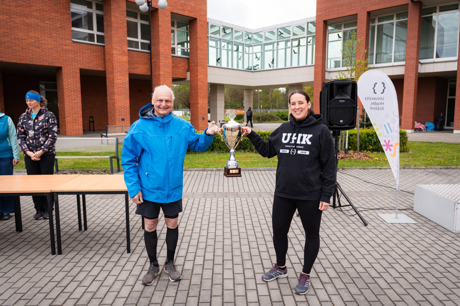 Každý rok mě umí na startovní čáře Akademik runu dojmout to samé. Ochota a schopnost se na UHK aktivizovat za účelem společného dobročinného podniku a běžet společně za věc, která má opravdu smysl. Jsem rád, že Univerzitní sportovní odpoledne mělo i letos v rámci doprovodných aktivit co nabídnout, a to od účasti vojáků, přes prezentaci aplikace Záchranka až po aktivity reprezentantů UNIted HK. Zasloužená gratulace pak přirozeně míří na Přírodovědeckou fakultu UHK, které jsem za výhru v Akademik runu vypůjčil rektorský pohár.