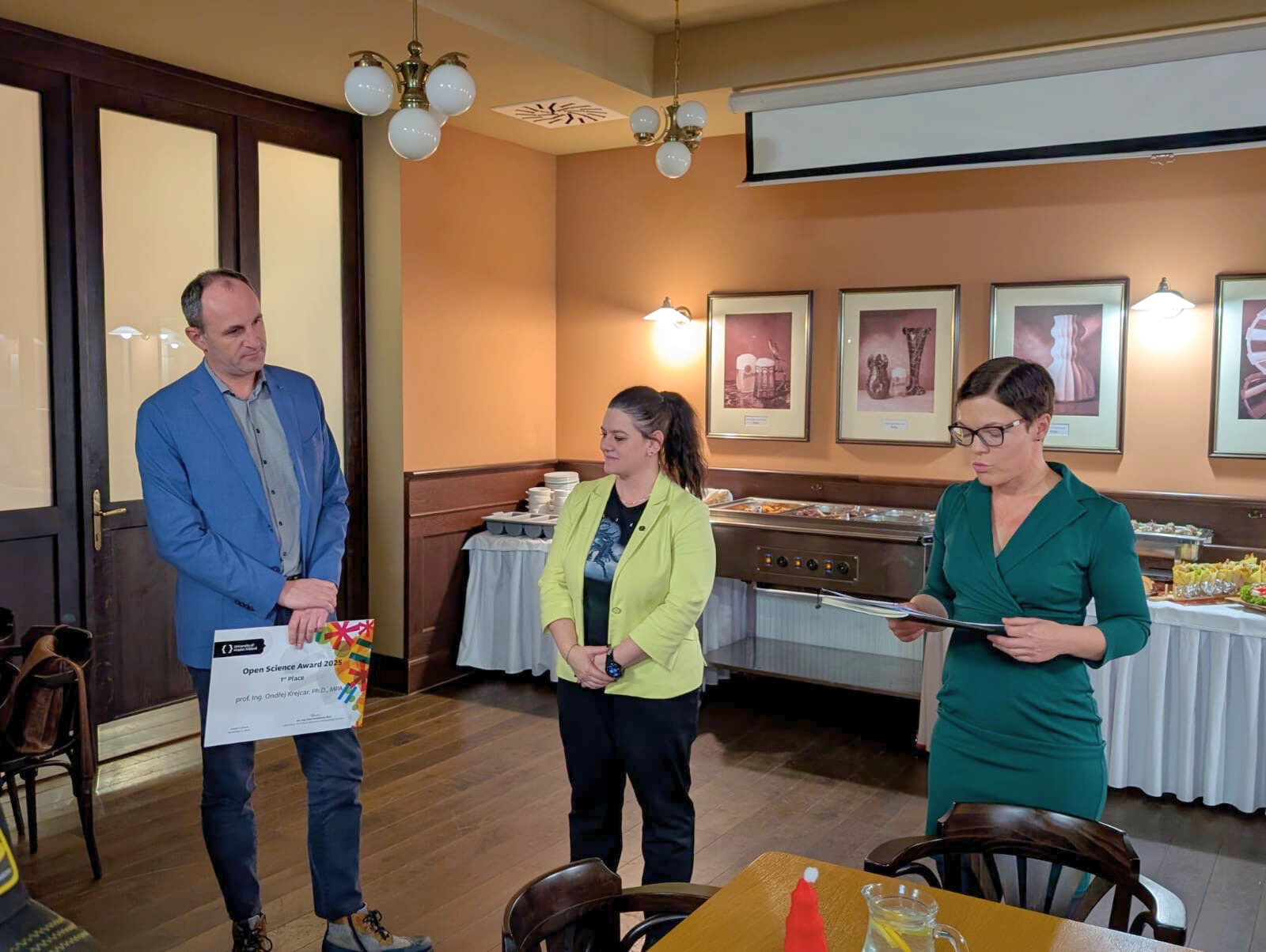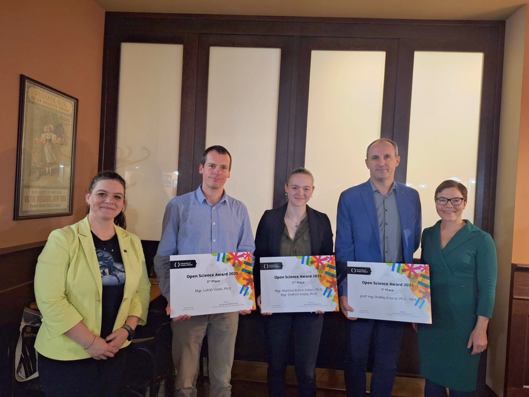 Univerzita Hradec Králové vyhlásila výsledky prvního ročníku soutěže Open Science Award, která oceňuje výjimečné příklady otevřené, transparentní a odpovědné vědecké práce. Osmičlenná hodnoticí komise složená z odborníků na Open Science, zástupců fakult, vedení univerzity a Etické komise pro výzkum, posuzovala přihlášky podle míry a kvality otevřenosti, odborného a společenského dopadu, originality přístupu a dlouhodobé udržitelnosti. Ceny vítězům předala na předvánočním slavnostním setkání paní prorektorka pro vědu, výzkum a transfer znalostí, doc. Ing. Hana Tomášková, Ph.D.
