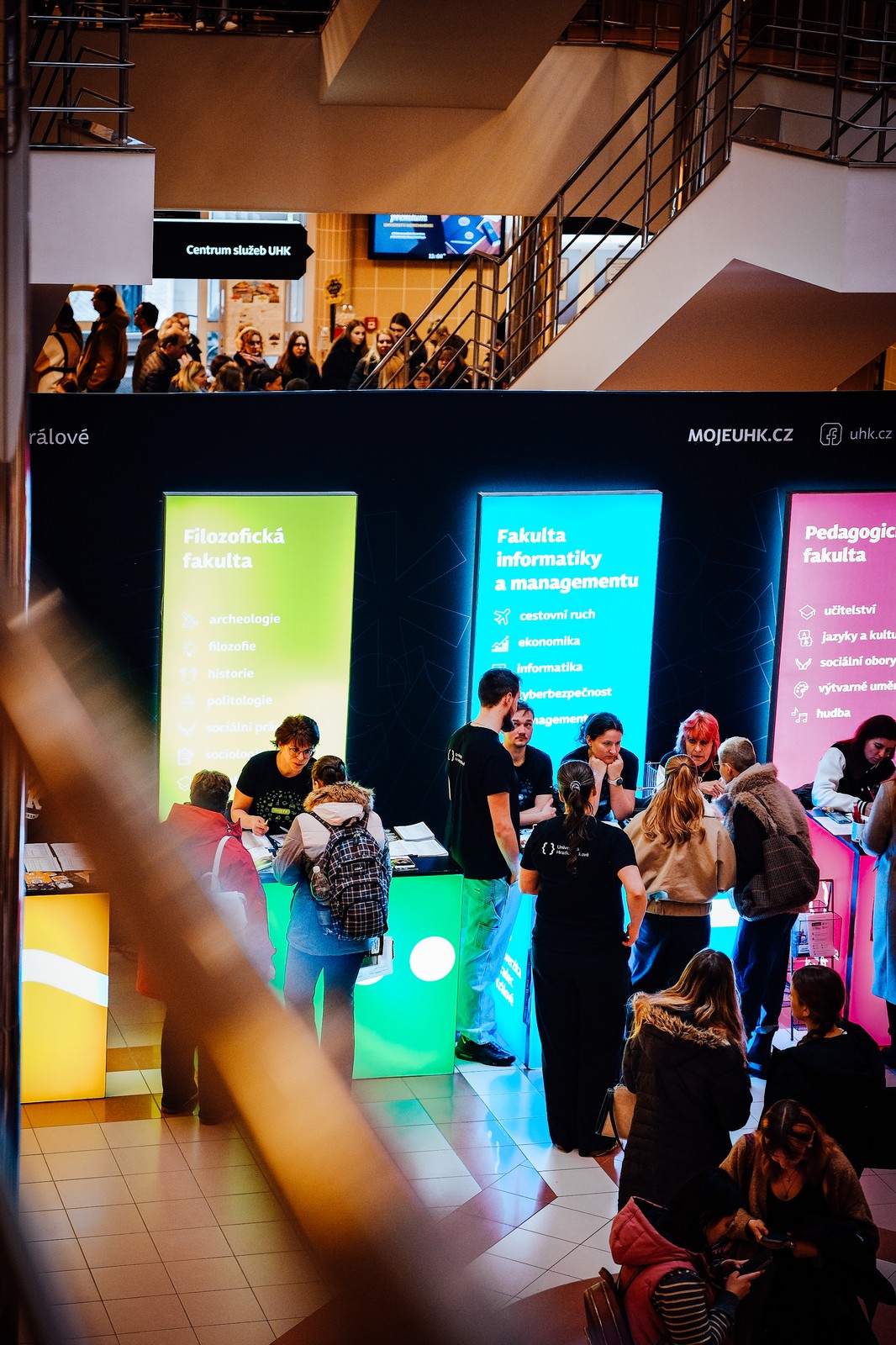 Výrazným lákadlem byly prohlídky fakultních budov se studentskými ambasadory. Zájemci a zájemkyně si mohli projít prostory fakulty informatiky a managementu, pedagogické, přírodovědecké i filozofické fakulty a získat tak konkrétní představu o tom, kde výuka probíhá. Nešlo však pouze o ukázku prostor, ale také o sdílení autentických zážitků z vysokoškolského studia a rad pro podání přihlášky nebo přijímací řízení.