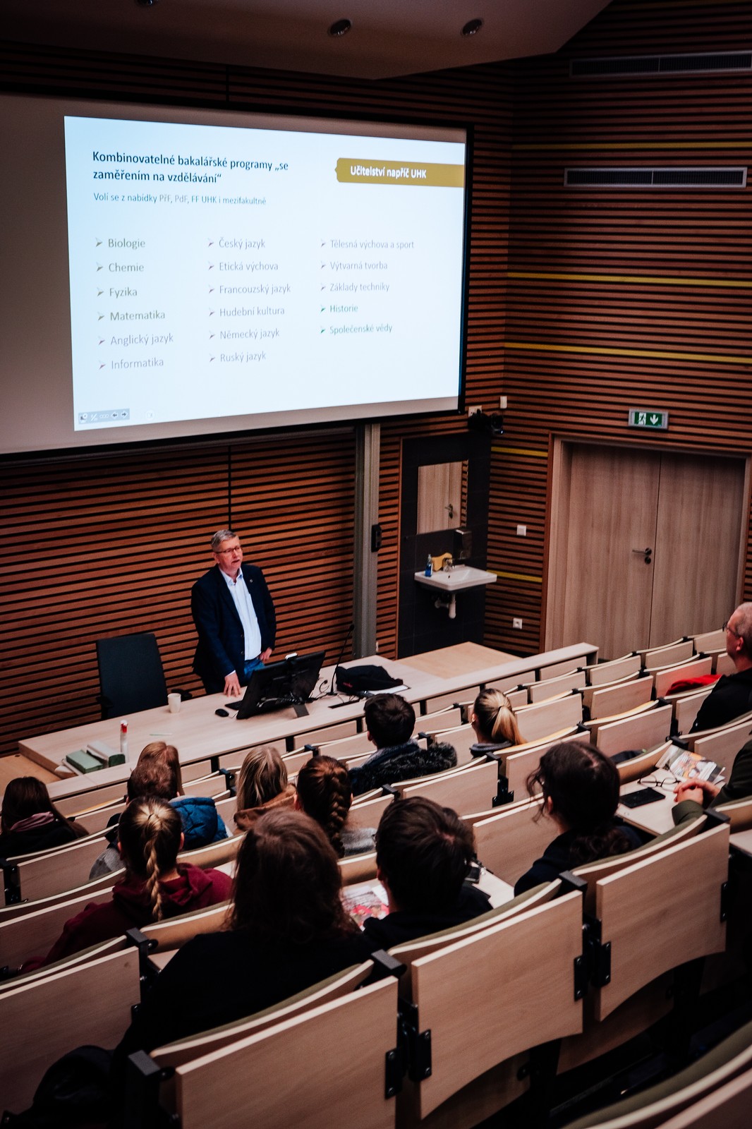Z dlouhodobé komunikace se studujícími středních škol a gymnázií máme potvrzeno, že osobní zkušenost hraje při rozhodování o studiu zásadní roli, a proto kromě veletrhů vzdělávání a dnů otevřených dveří realizujeme desítky prezentací a exkurzí pro střední školy, ve kterých přibližujeme studijní nabídku UHK. Tuto možnost jsme v rámci dne otevřených dveří představili kariérním poradcům středních škol a gymnázií, které přijali naše pozvání.