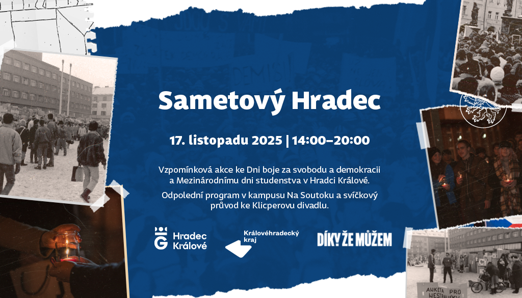 Přijďte s námi 17. listopadu 2025 oslavit Den boje za svobodu a demokracii a Mezinárodní den studentstva v Hradci Králové.