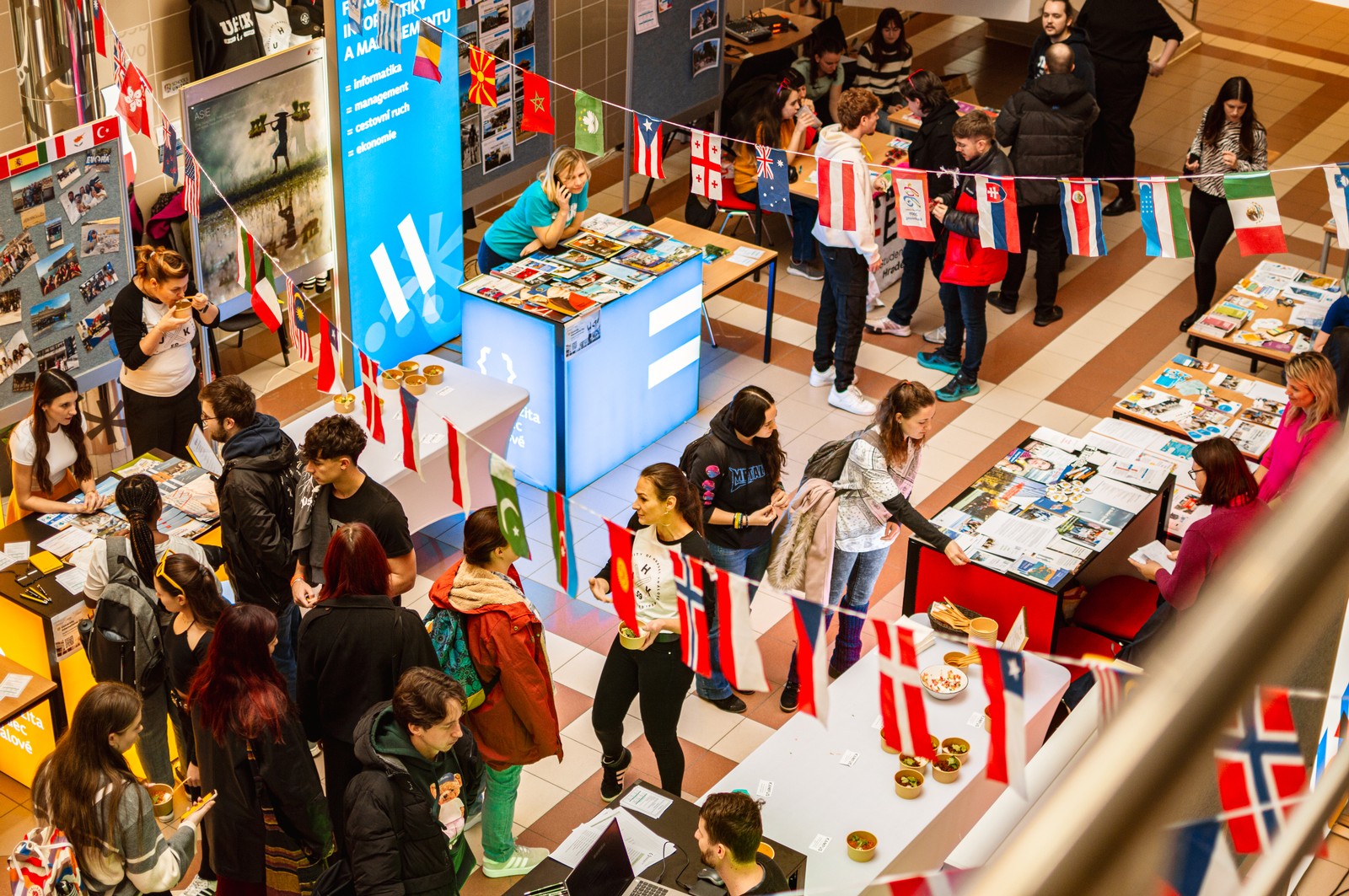Na akci si můžete vyzkoušet konverzaci v různých světových jazycích (mini-mobility fair), pobavit se se spolužáky, kteří už mají zkušenosti ze zahraničí, a ochutnat zmíněnou cizí kuchyni. Hlavní cíl je ale obecně si užít skvělou mezinárodní atmosféru na UHK!
