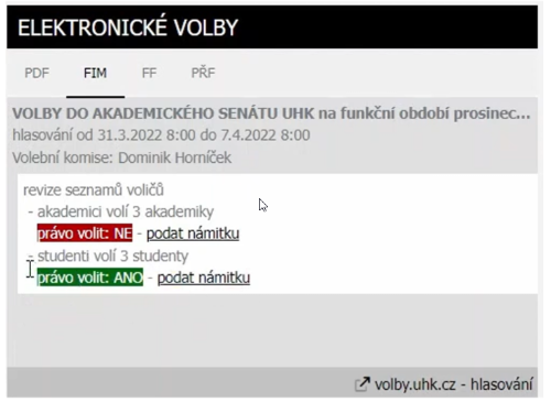 - tvorba seznamů voličů (Intranet UHK)