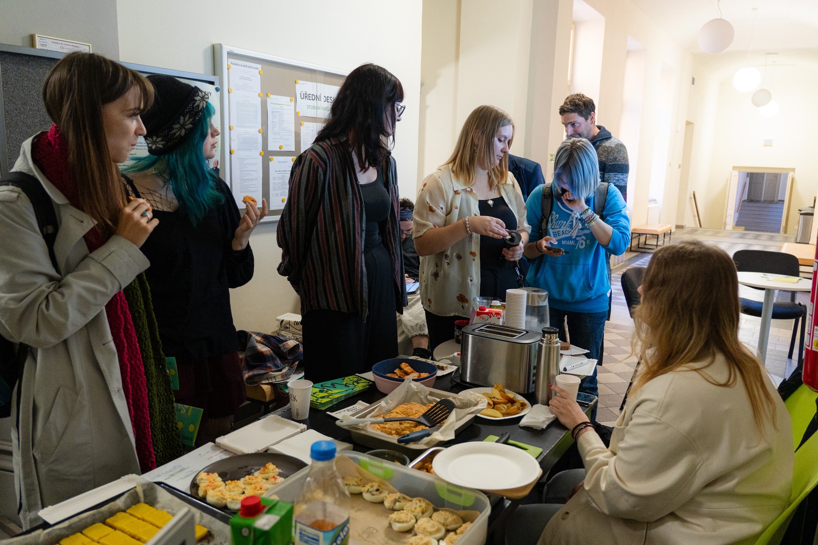 Dopoledne patřilo tradičním snídaním se spolky, kde se potkávali starší i noví studenti, kteří spolu vzájemně sdíleli své zážitky a u toho vychutnávali snídaňové dobroty. Odpoledne přineslo pořádnou nálož přednášek, workshopů a doprovodného programu- Od tvoření a tance přes diskuse s neziskovými organizacemi, až po prezentace fakult a oborů. Nechyběla ani výstava, přednášky pro prváky, queer deskohraní nebo program v rámci akce ETUR. Kdo chtěl, mohl si odpočinout v chill zóně, dát si kávu nebo se prostě jen nechat vtáhnout atmosférou kampusu, který celý den žil.