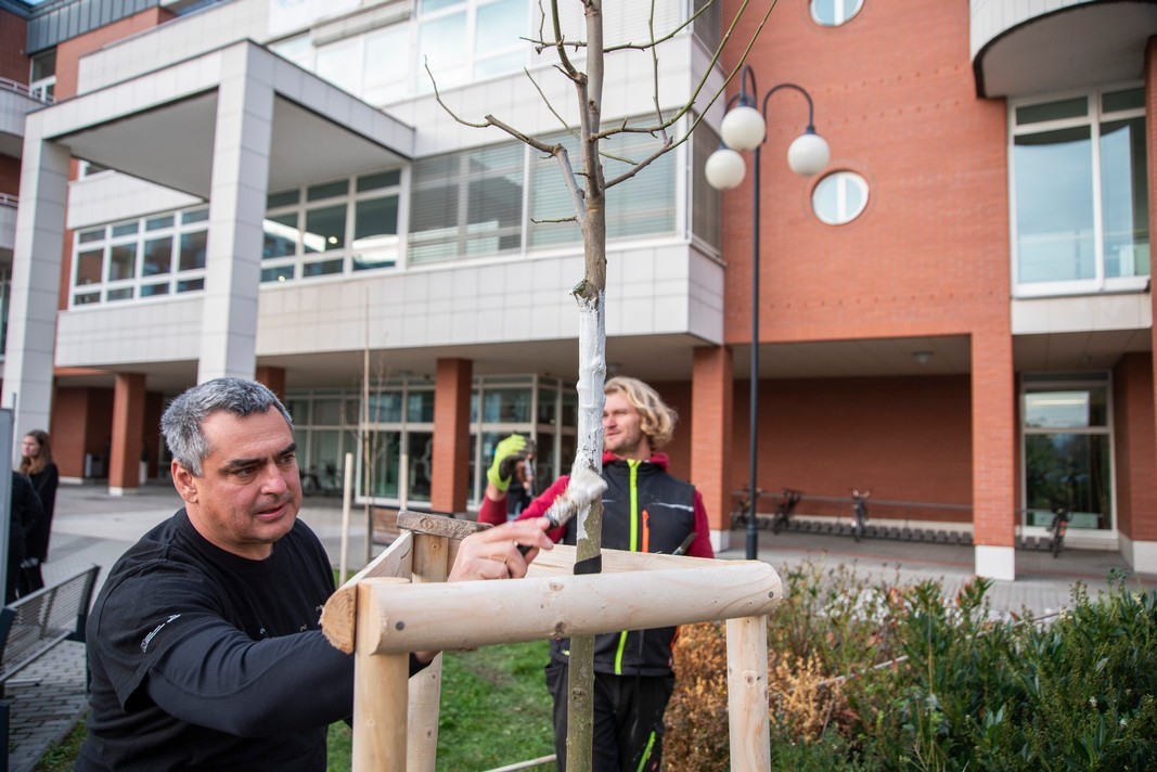 S hrdostí oznamujeme, že dnešní plánovaná výsadba stromů na Náměstí Václava Havla byla úspěšně dokončena. Tento milník je významným krokem k zajištění chladivého stínu a vylepšení mikroklimatu v centru našeho kampusu. V duchu udržitelnosti a spolupráce studenti dendrologie, zaměstnanci fakulty a další dobrovolníci pod vedením zkušeného zahradníka sjednotili své síly, aby společně vysadili nové stromy, které se stanou základem pro zelenější a přívětivější prostředí.