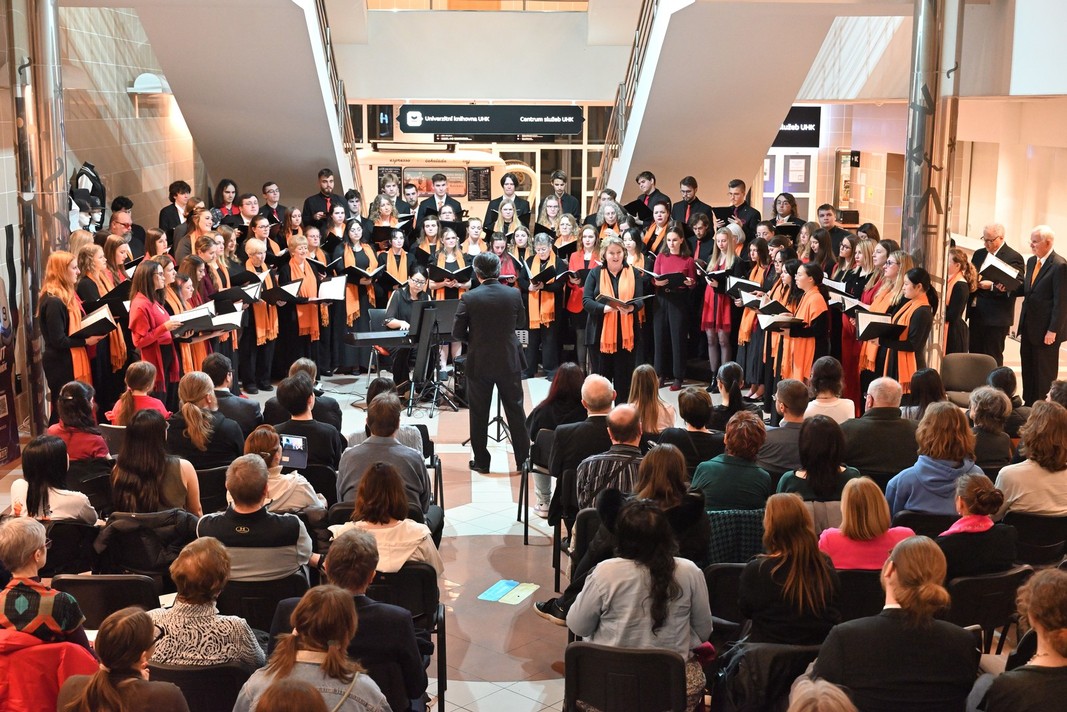 Both choirs then presented themselves to audiences in Hradec Králové on Tuesday, 3 March, at the ceremonial hall of Campus Building A. The concert was opened by the Vice-Rector of the University of Hradec Králové, Prof. František Vaníček, while the guests were also welcomed by the Dean of the Faculty of Education, Dr. Nella Mlsová.